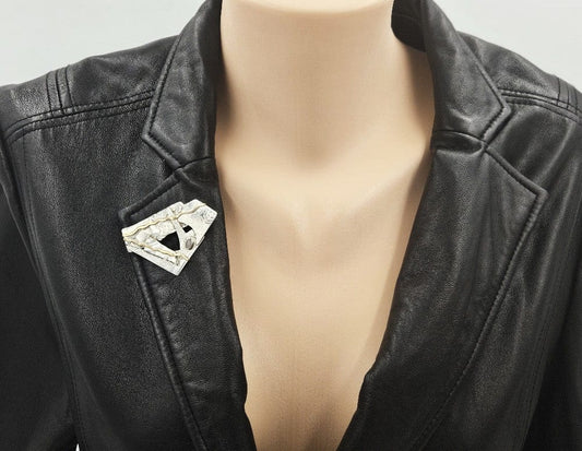 Fab! Lynda Thorp Sterling 14K Rose Quartz Modernist Abstract Brooch 1991