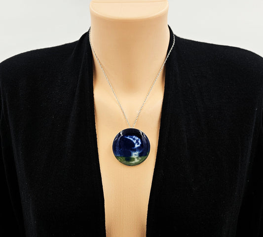 RARE Norway Hans Myhre Sterling & Azurite Brooch Pendant Necklace 50's