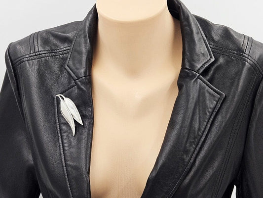 Rare Danish Designer Brødrene Bjerring Brdr. Bj Sterling Large Leaf Brooch 1960s