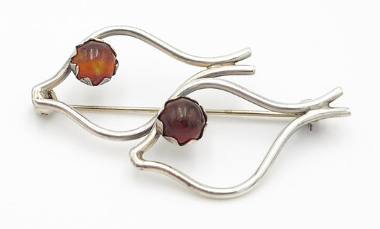 Danish Designer COF Frydensberg Sterling Amber Modernist Fish Brooch Circa 1950s