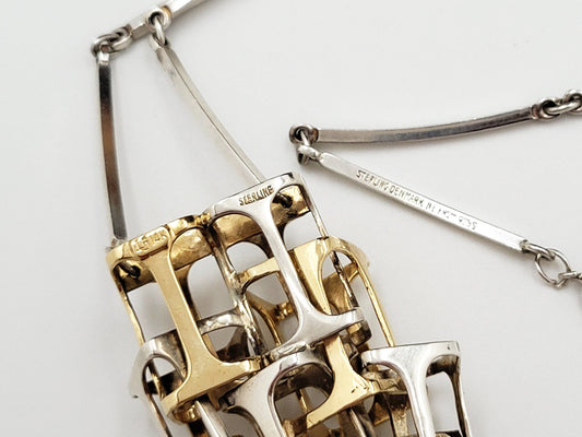 Superb Danish Design 14k & 925 Abstract Modernist Cubist 3D HUGE Necklace