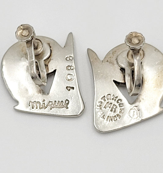 Stunning Miguel Taxco Rancho Alegre Modernist Sterling Abalone Earrings 50s/60s