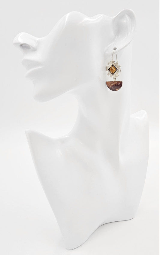 Designer Lesley Aine McKeown Sterling Quartz Agate Modernist Earrings NOS