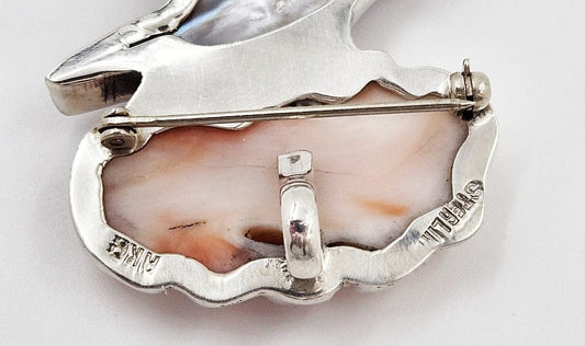 Superb Amy Kahn Russell Sterling Carved Quartz MOP Flower Bird Pin Pendant