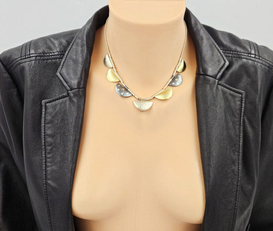 Superb Designer Signed Sterling Silver & 18k Modernist Necklace Earrings SET