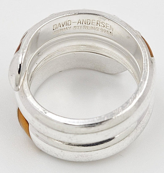 Norwegian David Andersen Sterling & Enamel Triple Wrap Ring Circa 1960s