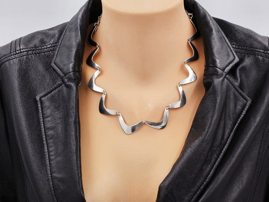 Artisan Sterling Eilat Stone Scandinavian Mod Style XL Statement Necklace 60's