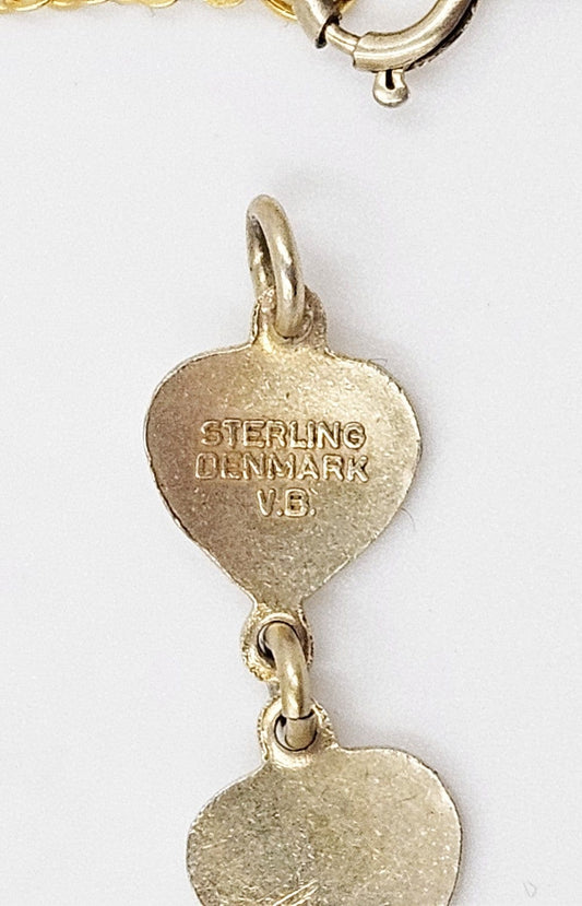 Superb Denmark Volmer Bahner Sterling & Enamel Hearts Necklace Circa 1950s