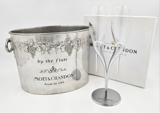 Rare Moët Chandon France DBL Magnum Champagne Cooler + Toasting Flutes