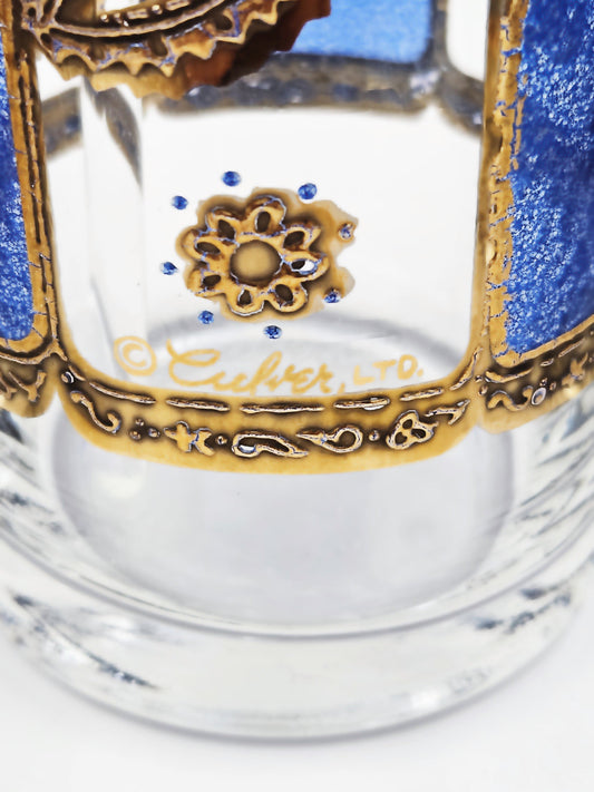 Superb Culver Royal Blue 22K Gold Floral Martini Pitcher Glasses Set C1960s
