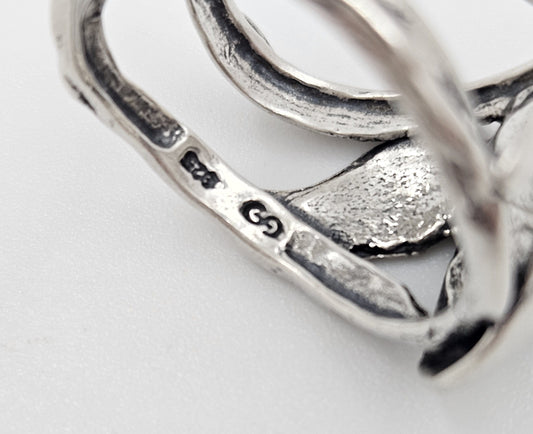Golan Goldex Bold Abstract Modernist Brutalist Flower Sterling Cocktail Ring
