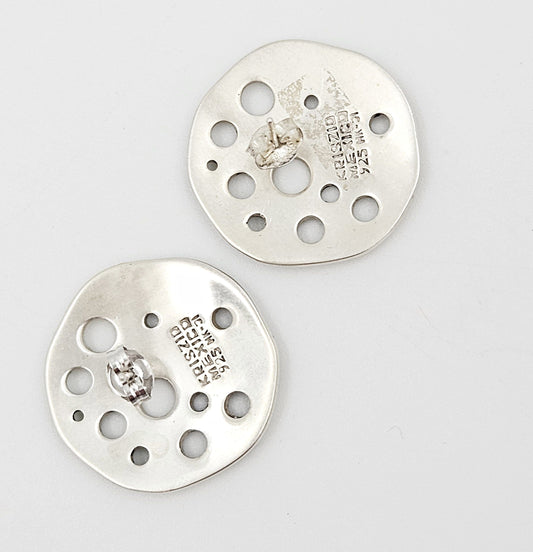 Mexican Designer Gisela Kriszio Sterling & Ceramic "Luna" Modernist Earrings