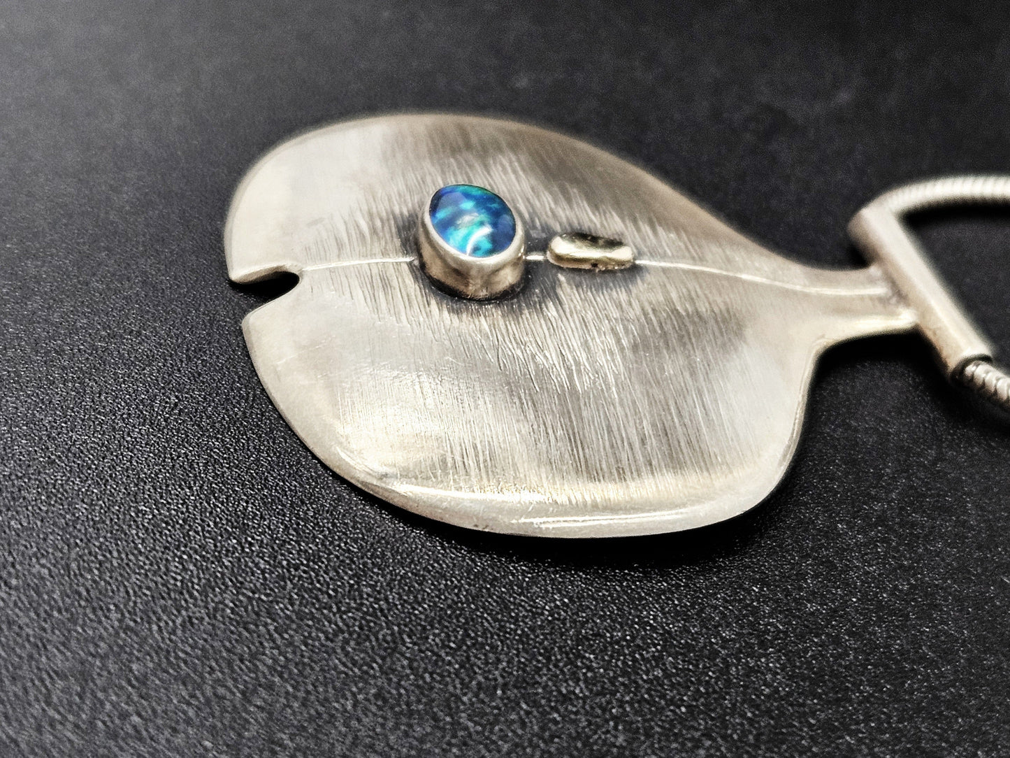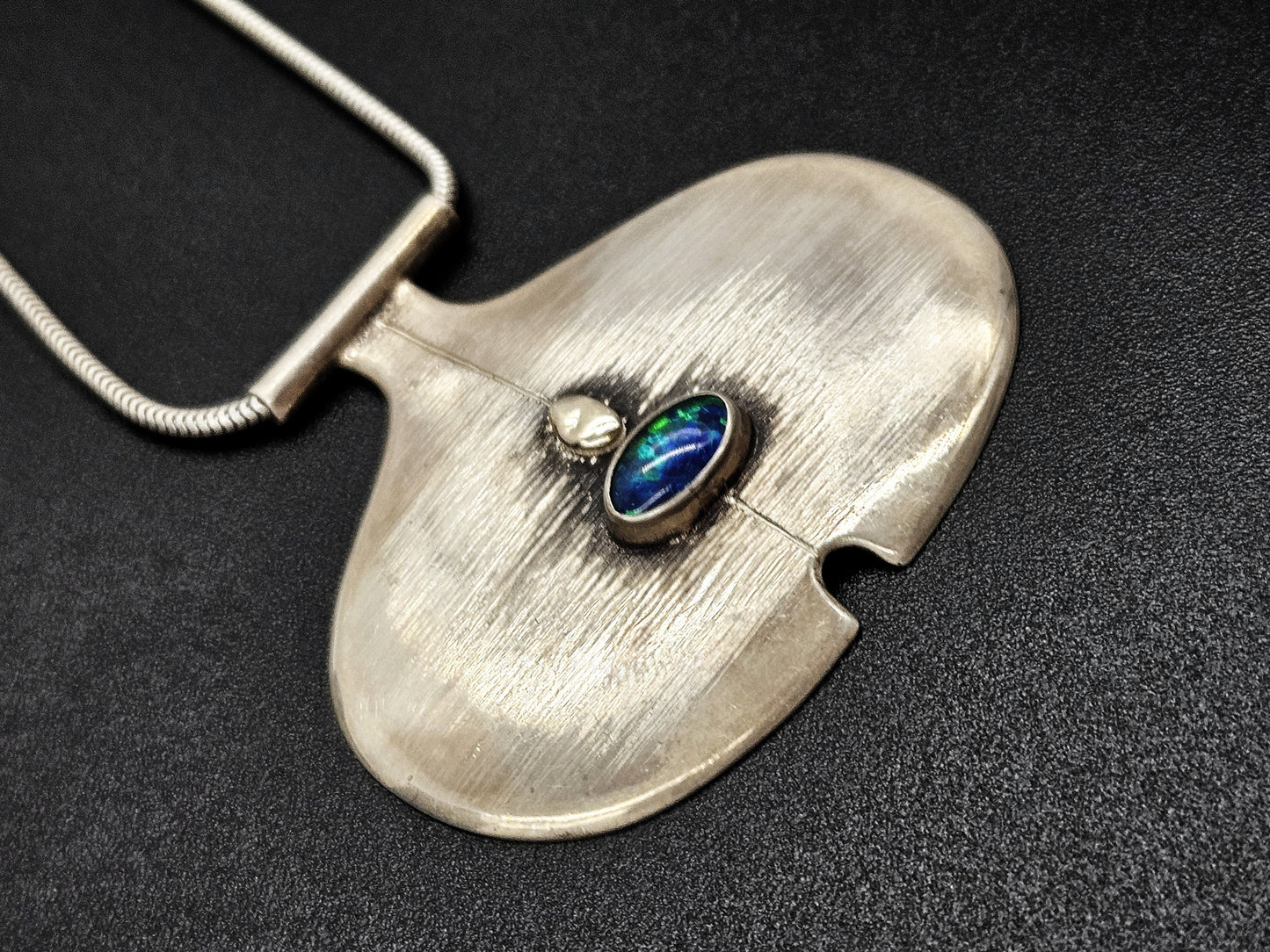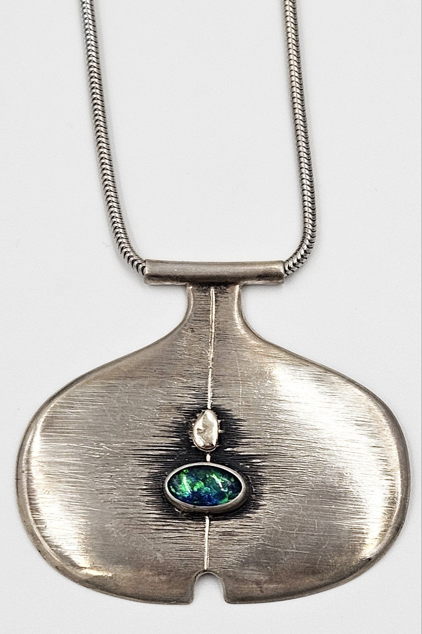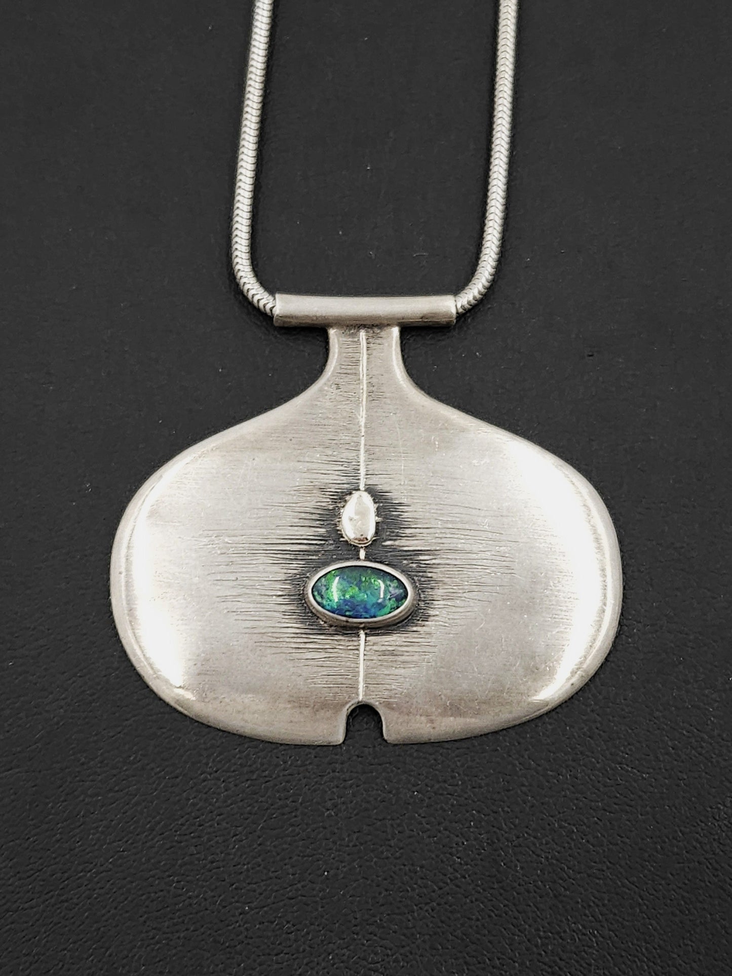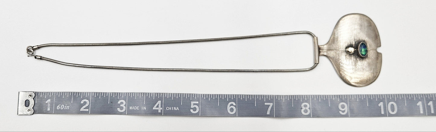 Sterling Silver & Australian Opal Modernist Pendant Necklace Circa 2000's