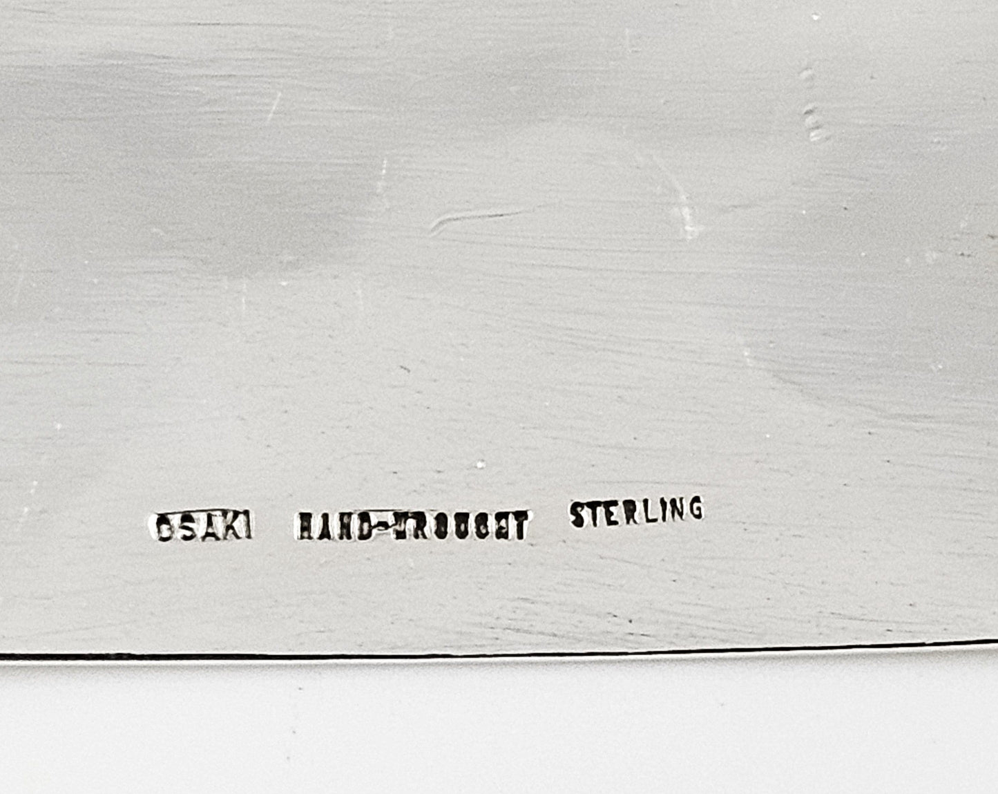 Harry Osaki (1904-1985) Osaki studied sculpture and fine arts at the University of Southern California under the GI Bill starting in 1945. Upon finishing school he opened his shop at 12 N. Mentor Ave in Pasadena, California, around 1950. A talented and highly respected Gold and Silversmith, most notable for his flatware, he was also one of the pioneers in the wearable art movement, and one of only a handful on the West coast. His jewelry is considered incredibly rare and highly collectible. Pieces of his work are in the Smithsonian and Vatican's collections, to name a few.