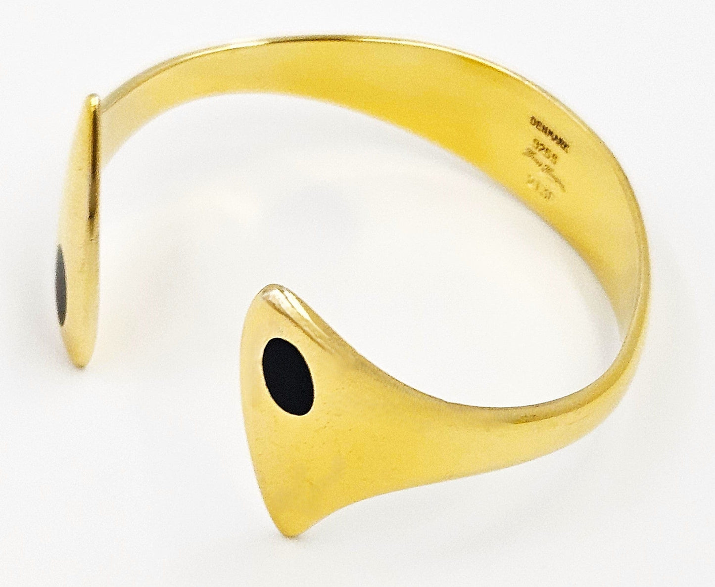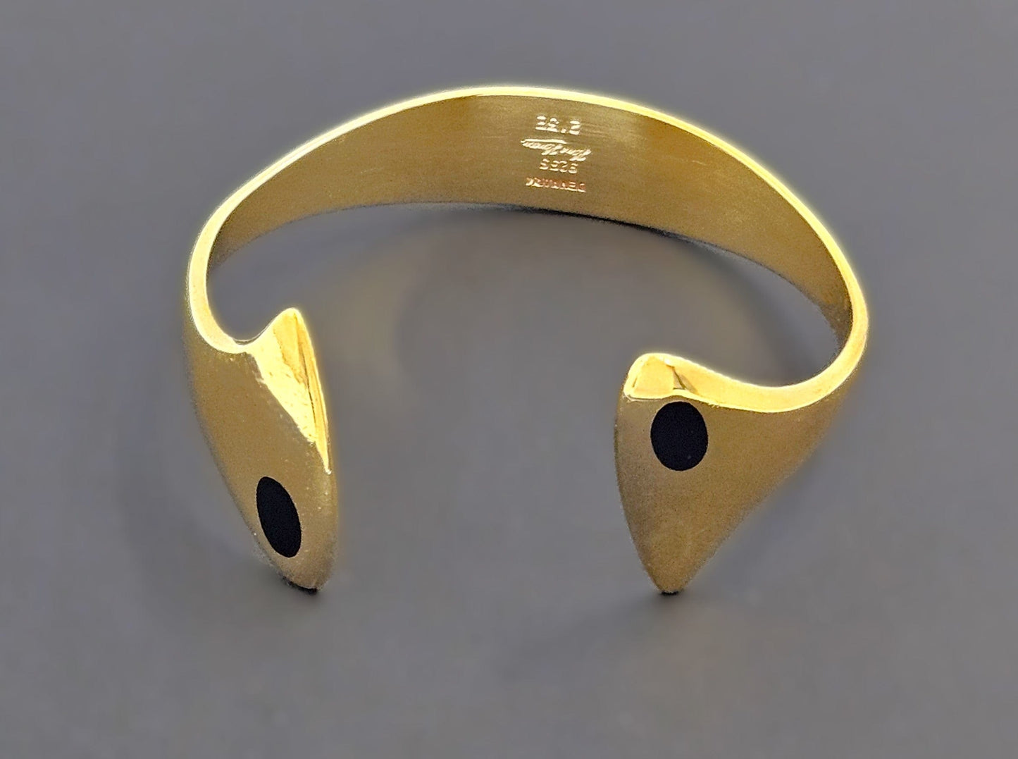 Rare Yellow Gold Gilding on Sterling Silver & Black Enamel Hans Hansen Denmark Modernist Cuff - Circa 1970s