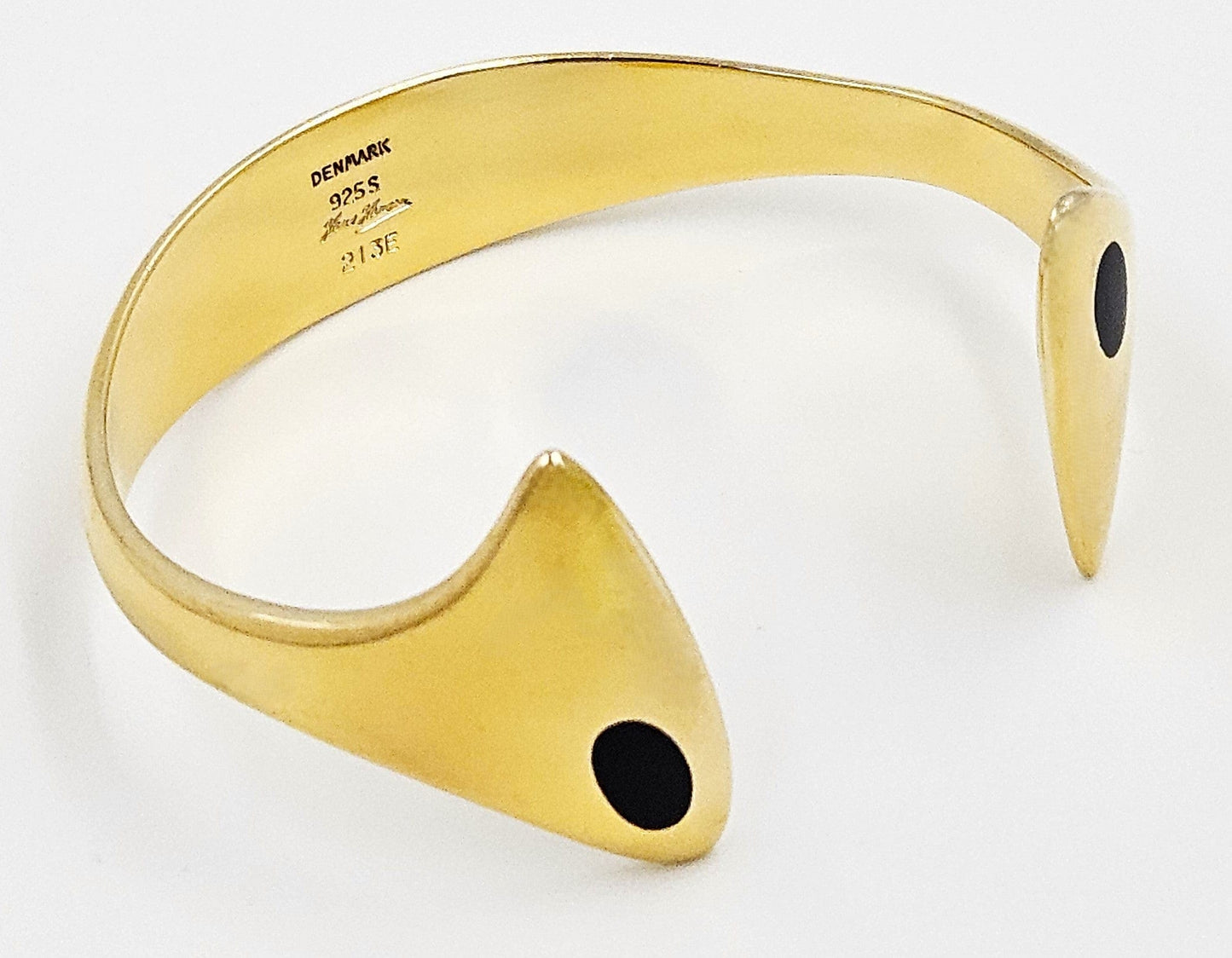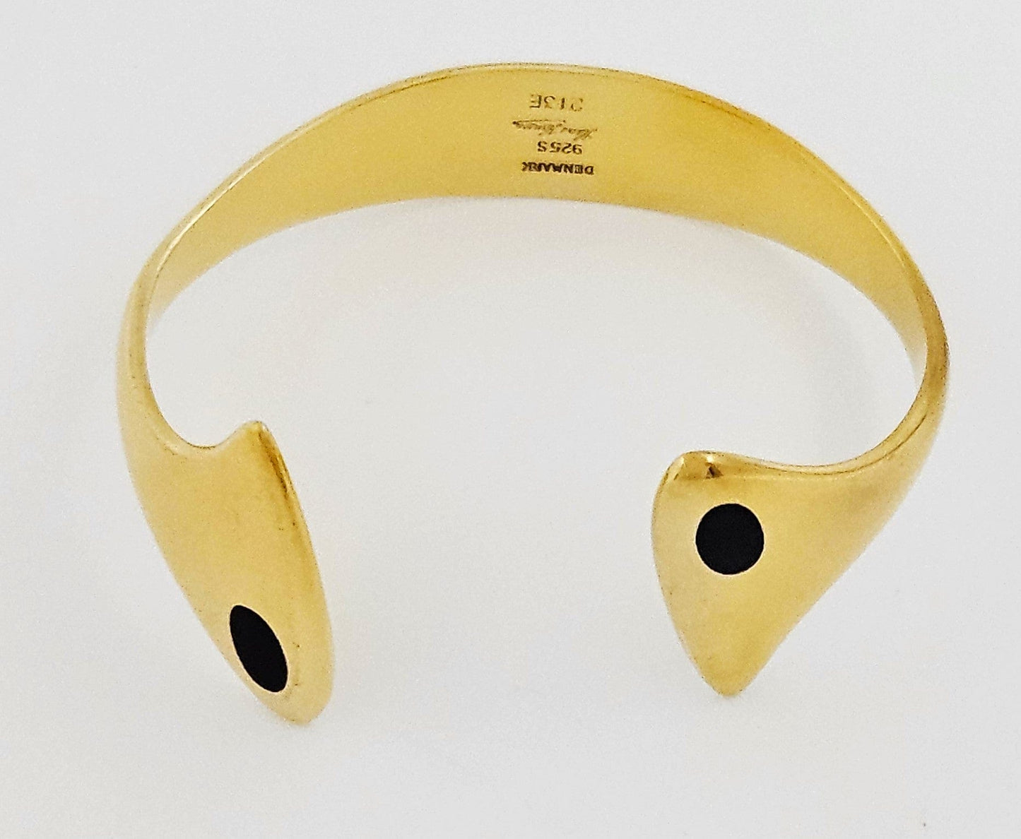 Rare Hans Hansen Denmark Gilt Sterling Black Enamel Modernist Bracelet 1970s