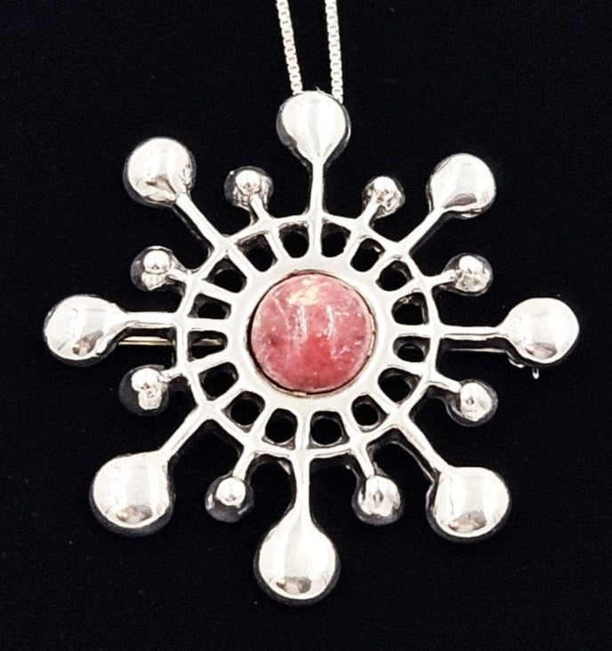 Superb modernist sterling and Amazonite brooch. It has been professionally polished and is in excellent condition. Stone is fully intact with no damage and is shiny and bright. Any weird black lines or marks in the photos are just reflections or shadows. It's very shiny and hard to photograph. Included with purchase are 2 silver converters so it can be worn as a pendant if preferred.