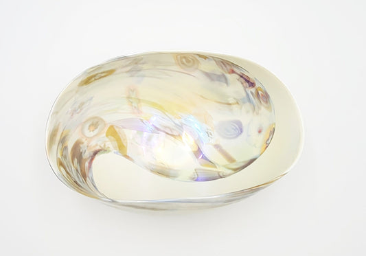 Italian Murano Glass Millefiori & Cream Colored Folded Décor Bowl C. 1990s