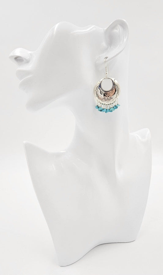 Carolyn Pollack Relios Sterling Silver & Turquoise Drop Dangle Earrings C. 1980s