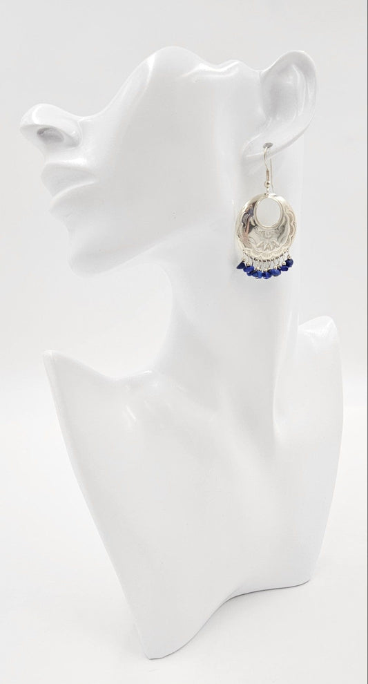Carolyn Pollack Relios Sterling Silver Lapis Lazuli Drop Dangle Earrings 1980's