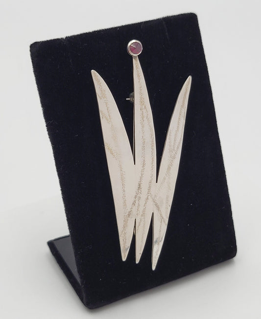 US Designer Ed Levin Modernist Sterling & Garnet LARGE Brooch Circa 1970's