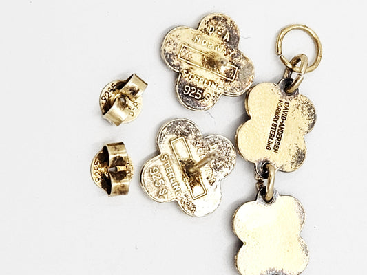 David Andersen Sterling Enamel Flower Bracelet Earrings Demi Parure Set 1950's