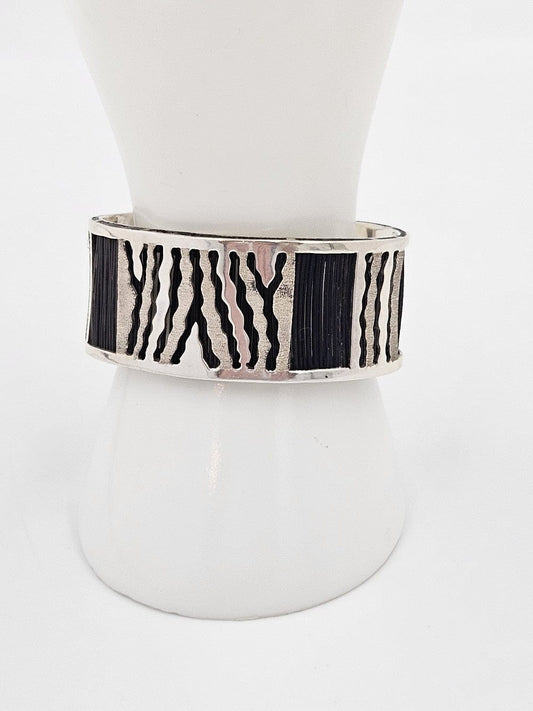 Designer Sterling Silver & Porcupine Quills Cuff Bracelet Fully Hallmarked 1990s
