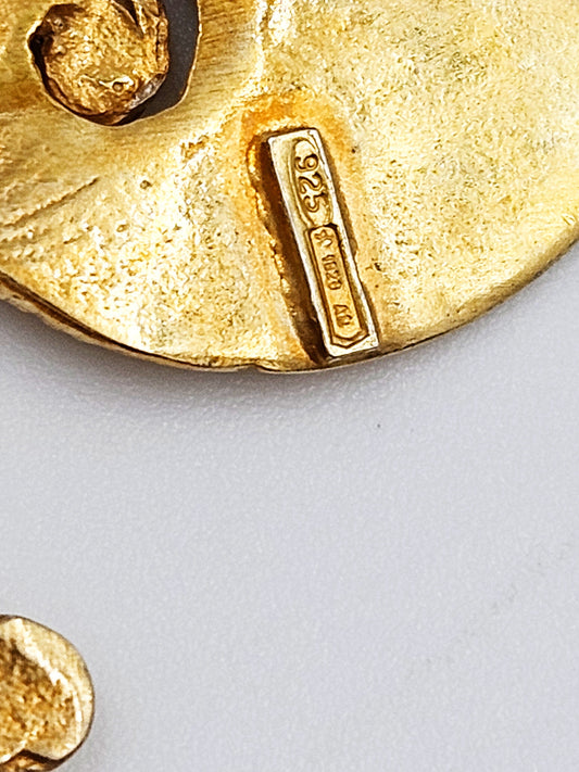Vintage Italian Designer One Gold Gilt Sterling Large Abstract Modernist Brooch