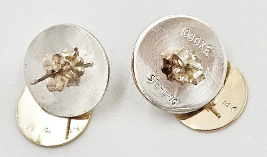 Superb Betty Cooke Modernist Sterling + 14K Double Disc Earrings Circa 1960s