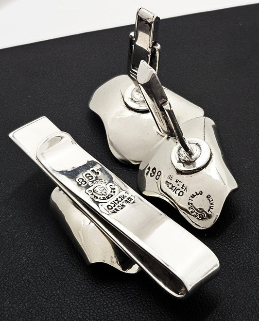 Los Castillo Margot Taxco Sterling Pearl Modernist Cufflinks Tie Bar Set 1950s