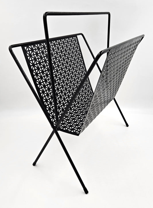 Mid Century Modern Black Wrought Iron Magazine LPs Records Holder 1950s