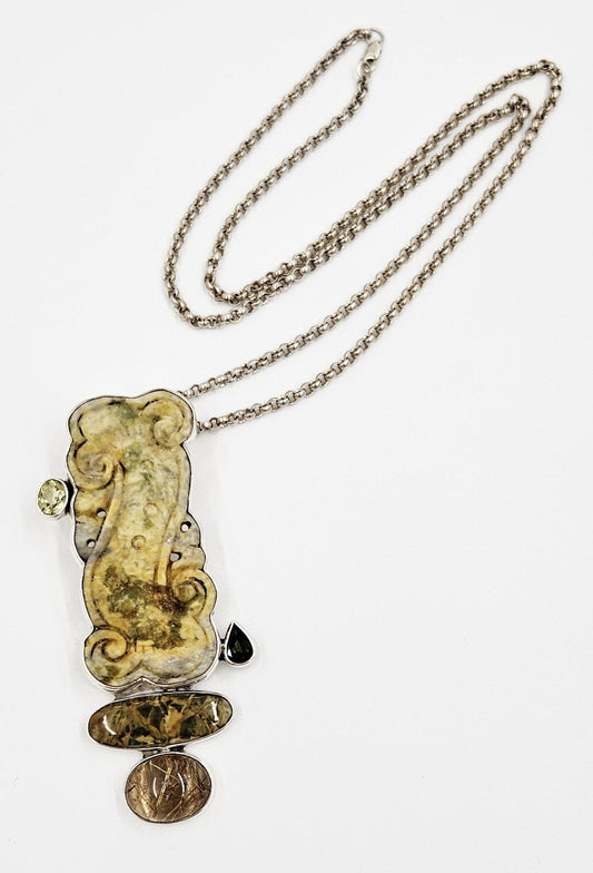 Superb The Dreamer Sterling Multi-Stone Huge Pendant Runway Necklace 90s