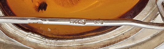 Vintage Artisan Made Sterling Silver & Amber Spider Bug Brooch Lapel Pin