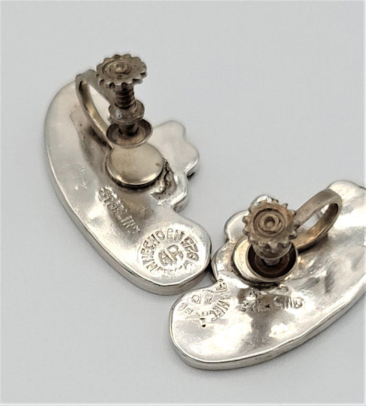 Vintage Designer AR Taxco Sterling Silver Art Deco Shell Inlay Earrings Signed