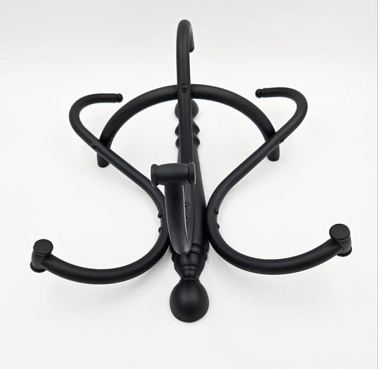 Restored Vintage Retro Chic Wall Hanging Matte Black Brass Coat & Hat Rack