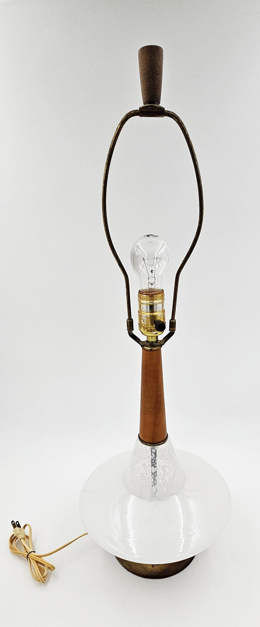 MCM Danish Modernist Style Bulbous White Glass & Teakwood Table Lamp 50/60s