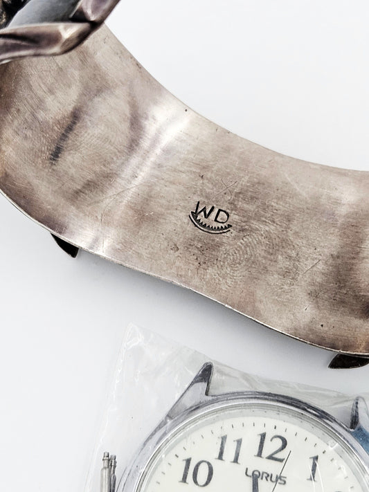 Navajo Artisan WD Sterling Turquoise Coral Watch Cuff Bracelet Circa 1960/70s