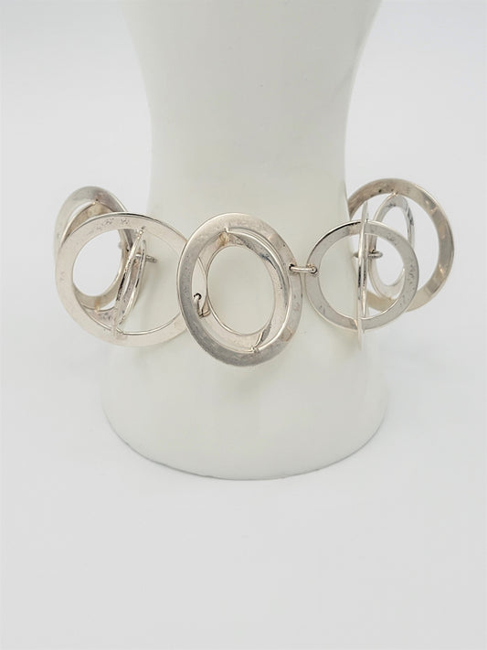 Superb DeTapia Sterling Silver Abstract Modernist 3-D Circles Bracelet 1990s