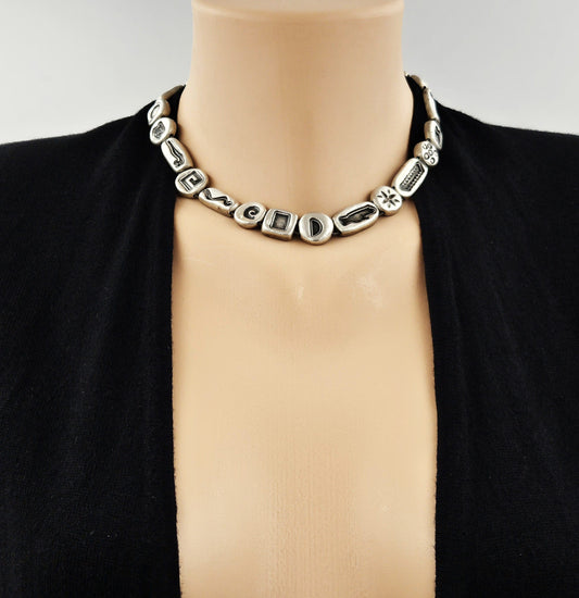 Superb Deborah Armstrong DAC 1996 Sterling Silver Hefty Panel Links Necklace