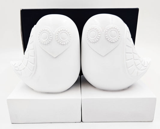 Jonathan Adler Happy Chic White Heart Faced Lola Owl Bookends New in Box