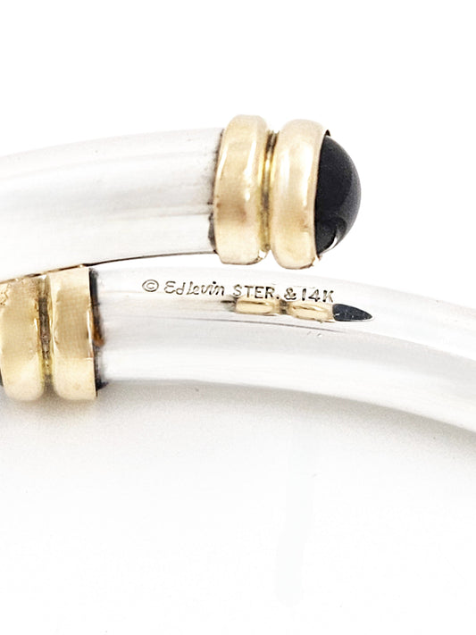 Superb Ed Levin Sterling 14K Gold Black Onyx Modernist Bangle Bracelet 1990s