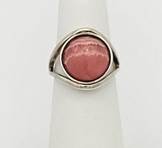 Vintage Danish Sterling Silver & Pink Rhodochrosite Domed Petite Ring Size 4.25