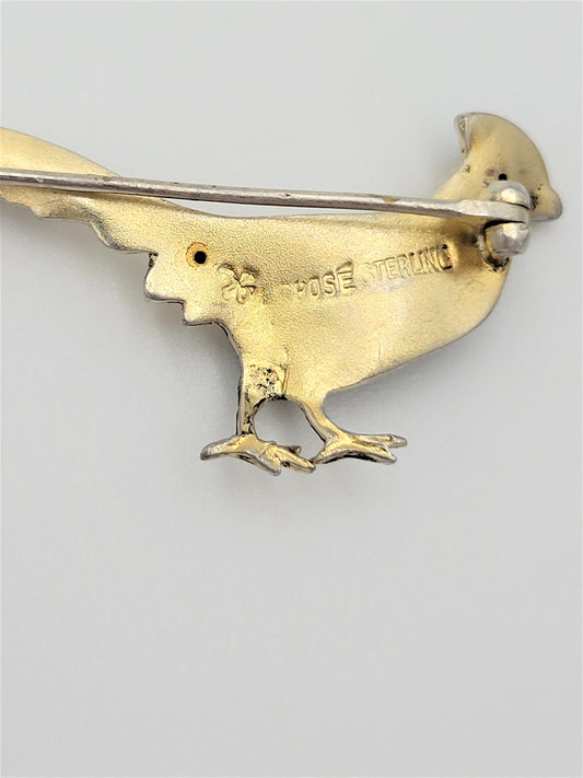 Vintage Sterling & Multi-Colored Guilloche Enamel 3-D Pheasant Brooch SIGNED
