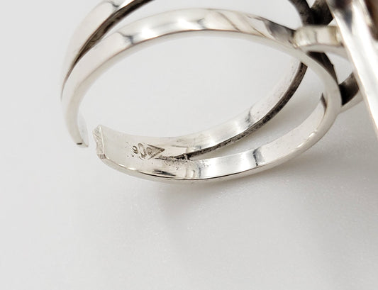 Vintage Silver & Mossy Agate Massive Abstract Lava Flow Ring Borke Denmark 1960's