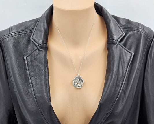 VTG Metales Casados Taxco Eagle 3 Abstract Picasso-ess 3D Sterling Necklace