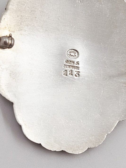 VTG Georg Jensen Sterling Moonstone Deco Flower Pin Pendant Necklace #113