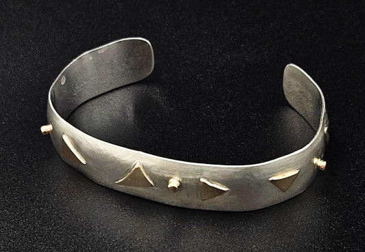 VTG Sterling & 14k Gold Artisan Signed MBG Abstract Modernist Cuff Bracelet