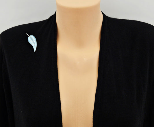 Volmer Bahner Denmark Sterling Lt Blue Enamel Leaf or Feather Brooch 1950s