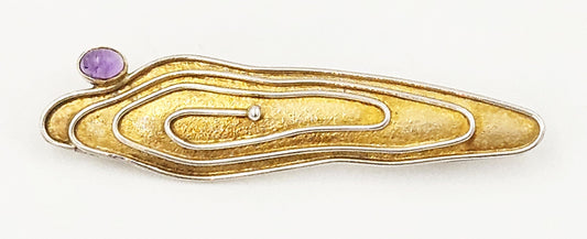 Artisan Designer Sterling Silver & Amethyst Large Abstract Modernist Brooch