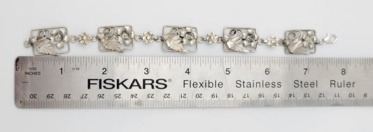 Art Deco Raised Relief Flora Fauna Sterling Silver Panel Links Bracelet 40/50s